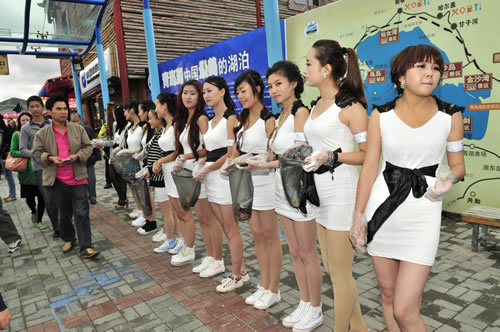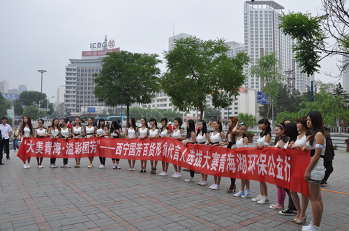 清晨伊始,30名美麗的佳麗們身著統(tǒng)一服裝,在中心廣場進行青海湖環(huán)保公益行啟動活動。靚麗的身影與極具號召力的主題吸引了廣大市民的圍觀和拍照。