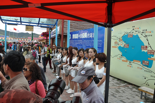 中午,一行到達青海湖畔。天高地闊的美景與靚麗的美女即刻構(gòu)筑成為一道精彩的風景,隨行攝影師、攝像師即刻拿起機器留下許多難得的好畫面。接下來的環(huán)保實踐與環(huán)保意識推廣為眾多選手留下了深刻的印象,許多選手紛紛表示希望通過自己的行動提高社會環(huán)保意識,讓跟多人參與到保護青海湖環(huán)境中來。