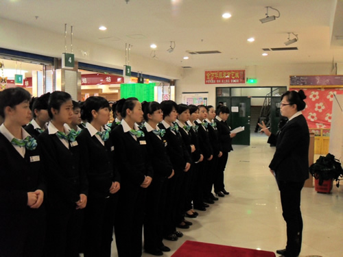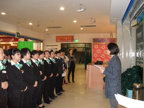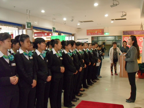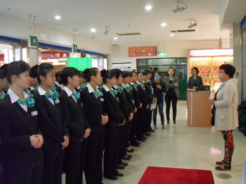 2013年4月9日是一個(gè)普通的工作日,但卻是國(guó)芳集團(tuán)收銀部崗位技能管理水平提升和發(fā)展歷程上非常重要的一天,因?yàn)榻裉靽?guó)芳集團(tuán)零售板塊蘭州地區(qū)收銀員職業(yè)技能評(píng)定工作正式拉開(kāi)帷幕。早上8點(diǎn)整,在蘭州國(guó)芳綜超廣場(chǎng)店正式召開(kāi)了本次活動(dòng)的動(dòng)員會(huì),動(dòng)員會(huì)由收銀部經(jīng)理韓曉麗女士主持,蒞臨現(xiàn)場(chǎng)的公司領(lǐng)導(dǎo)有集團(tuán)總裁助理、財(cái)務(wù)總監(jiān)余麗華女士,集團(tuán)總裁助理、人力資源總監(jiān)孟麗女士,集團(tuán)培訓(xùn)經(jīng)理、蘭州百貨人力資源經(jīng)理孫曉輝女士,綜超人力資源經(jīng)理馬琳先生。
