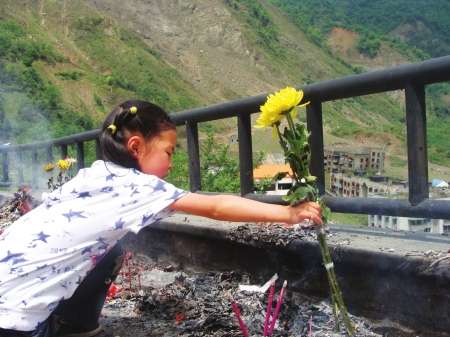 截至昨天下午6點,近5萬北川人,回到老縣城,通過放鞭炮,獻鮮花,燒紙錢等方式,祭奠長眠于老縣城廢墟下的親人。