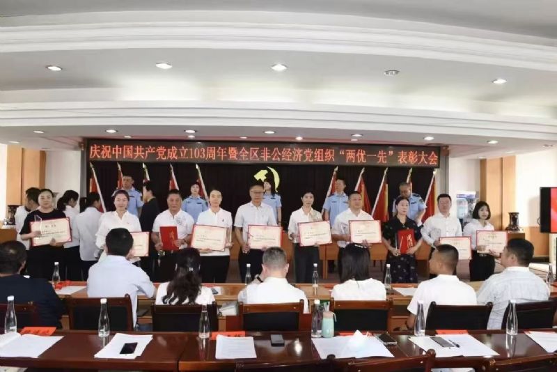 2024 年7月9日上午,“中共蘭州市城關(guān)區(qū)非公有制經(jīng)濟(jì)組織委員會(huì)紀(jì)念建黨 103 周年暨兩優(yōu)一先表彰大會(huì)”在城關(guān)區(qū)市場監(jiān)督管理局十樓隆重召開。