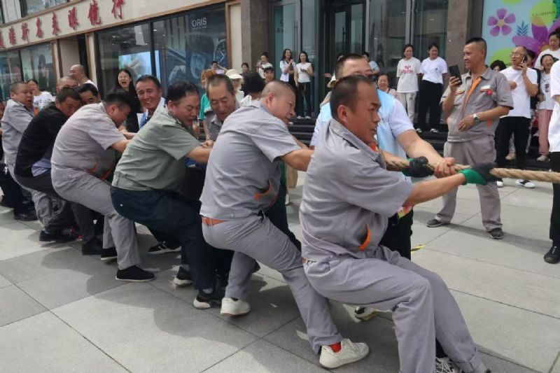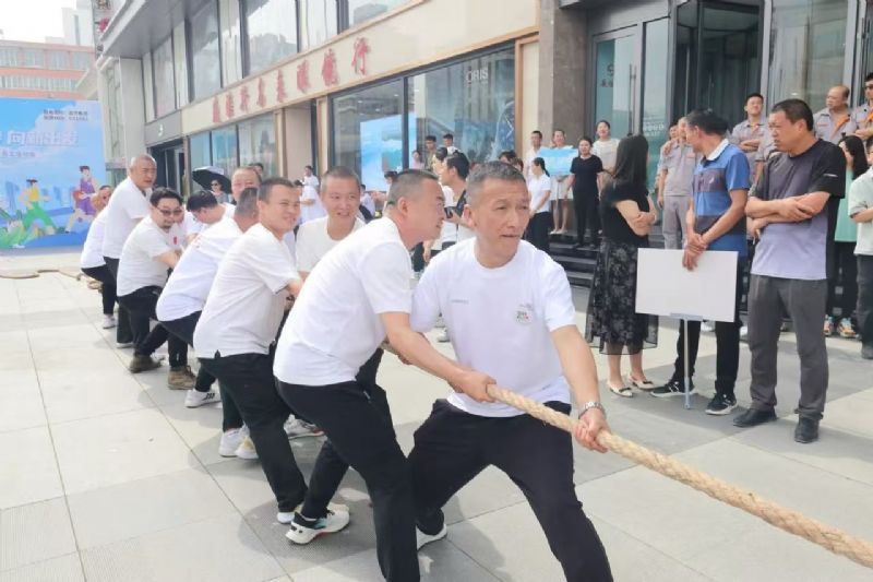 拔河比賽中,兩隊(duì)隊(duì)員緊握粗繩,腳蹬地面,身體后傾。哨聲一響,雙方齊聲吶喊,全力拉扯,臉漲得通紅。中間紅綢左右晃動(dòng),勝負(fù)難分,啦啦隊(duì)助威聲震耳欲聾。每一次的拉扯都是力量的較量,每一次的堅(jiān)持都是團(tuán)隊(duì)精神的體現(xiàn)。